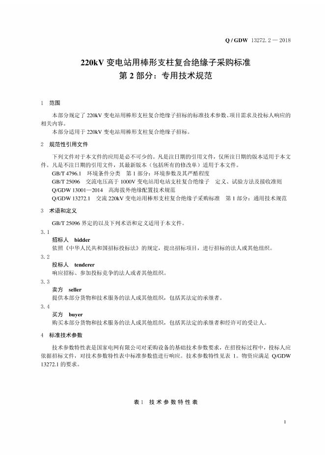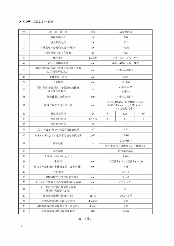 Q/GDW 13272.2-2018 220kV变电站用棒形支柱复合绝缘子采购标准 第2部分:专用技术规范