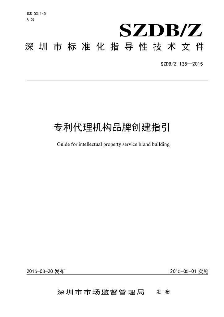 SZDB/Z 135-2015 专利代理机构品牌创建指引