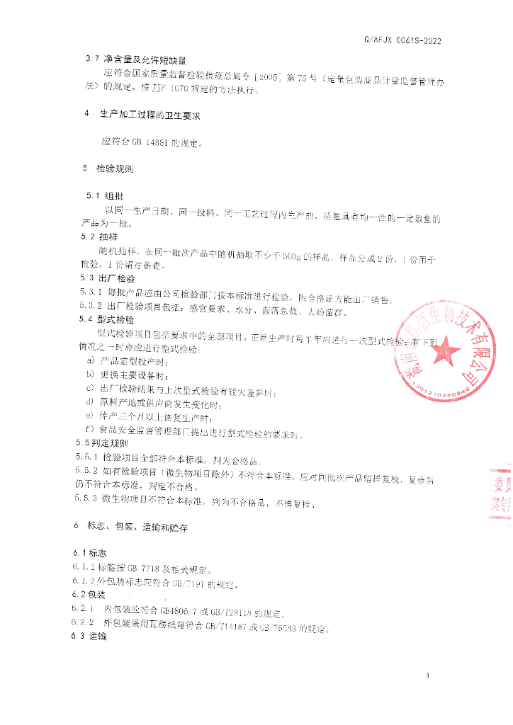 Q/AFJX 0061S-2022 桔子果汁粉(固体饮料)