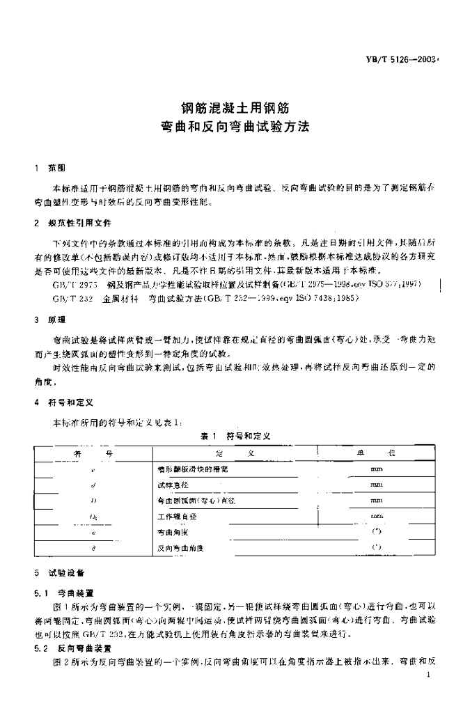 YB/T 5126-2003 钢筋混凝土用钢筋弯曲和反向弯曲试验方法