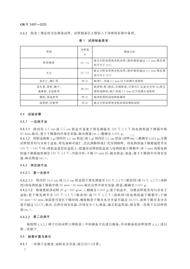 GB/T 5497-2025 粮油检验 粮食、油料中水分的测定