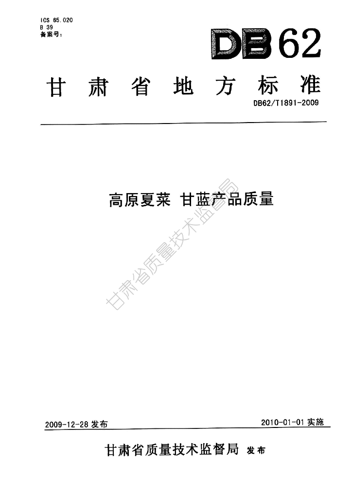 DB62/T 1891-2009 高原夏菜 甘蓝产品质量