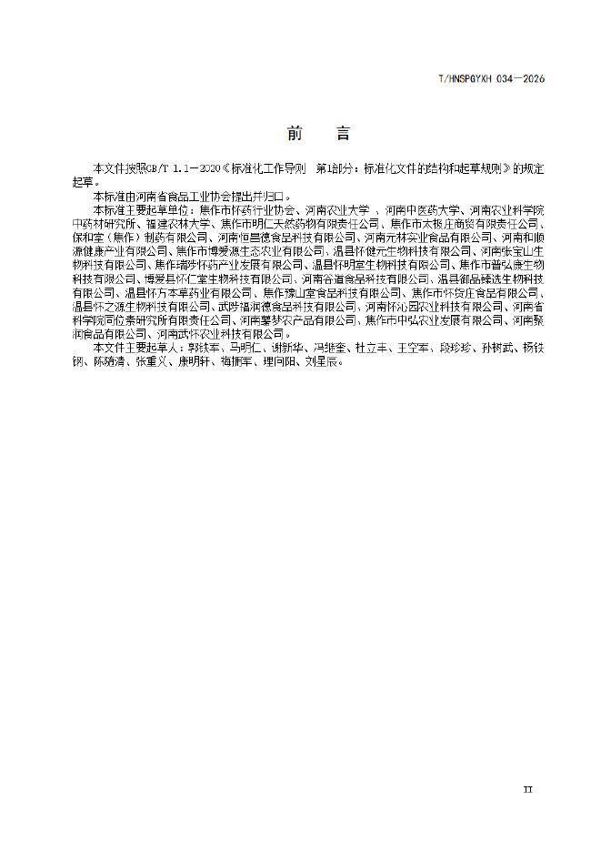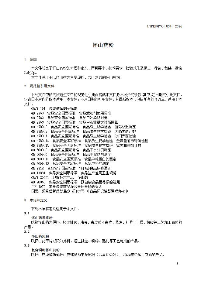 T/HNSPGYXH 034-2026 怀山药粉