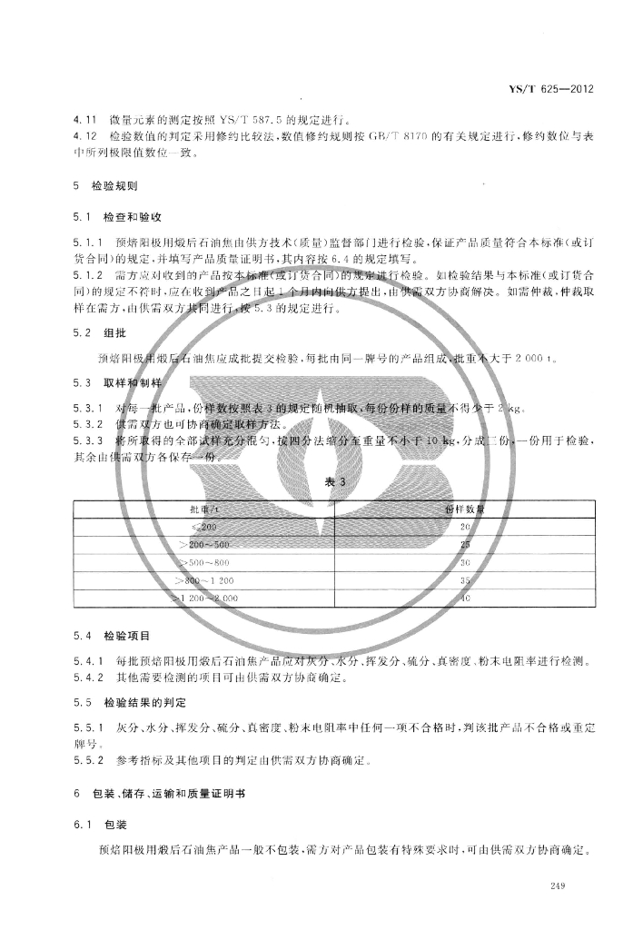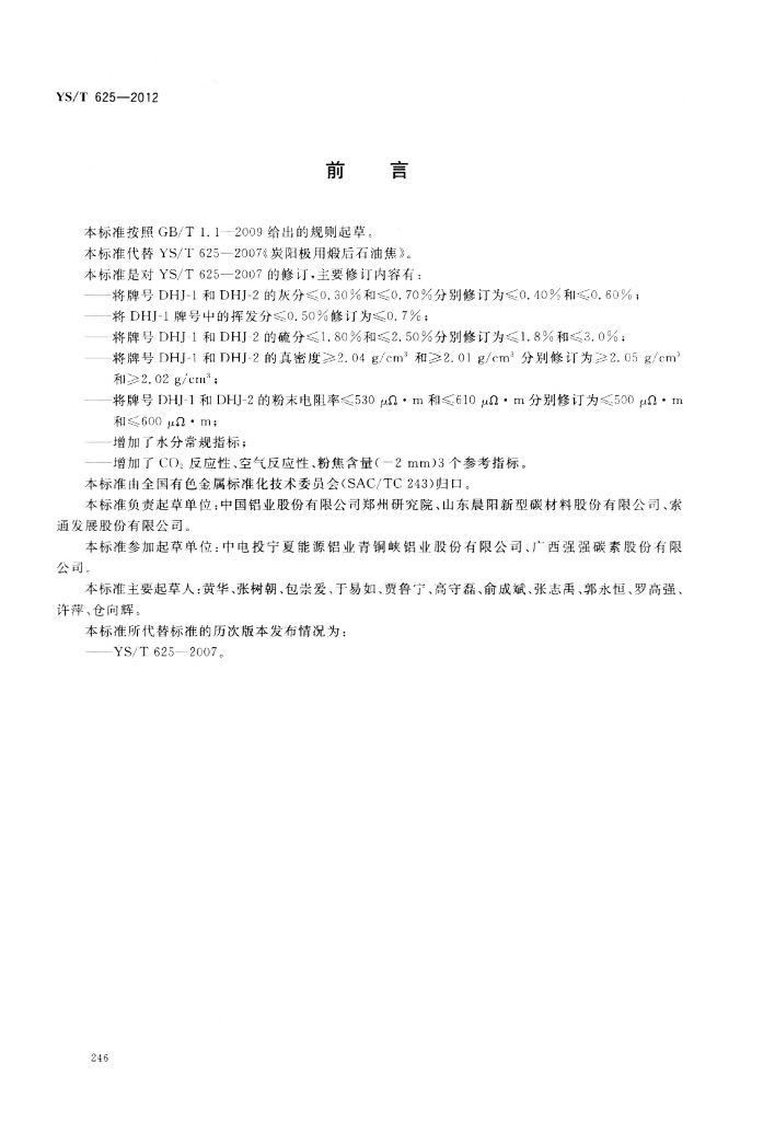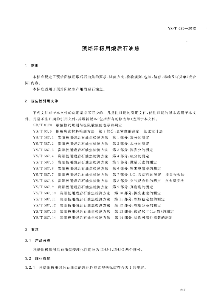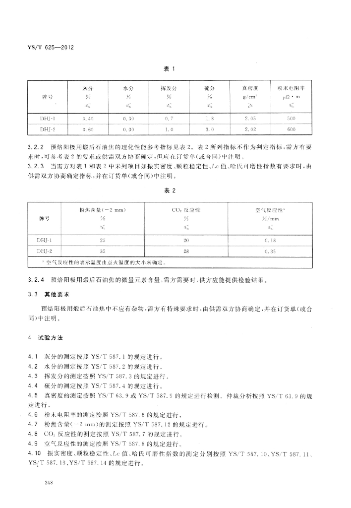 YS/T 625-2012 预焙阳极用煅后石油焦