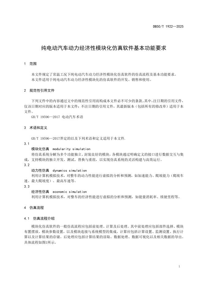 DB50/T 1922-2025 纯电动汽车动力经济性模块化仿真软件基本功能要求