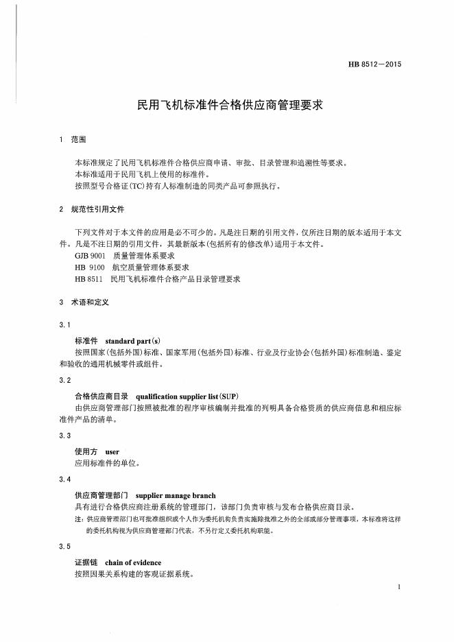 HB 8512-2015 民用飞机标准件合格供应商管理要求