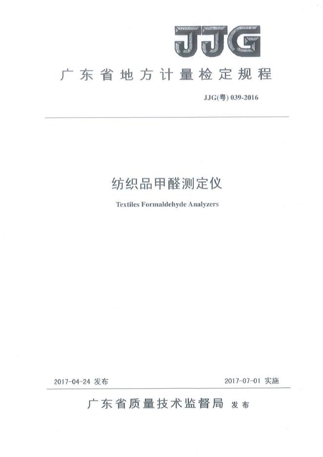 JJG(粤)039-2016 纺织品甲醛测定仪检定规程