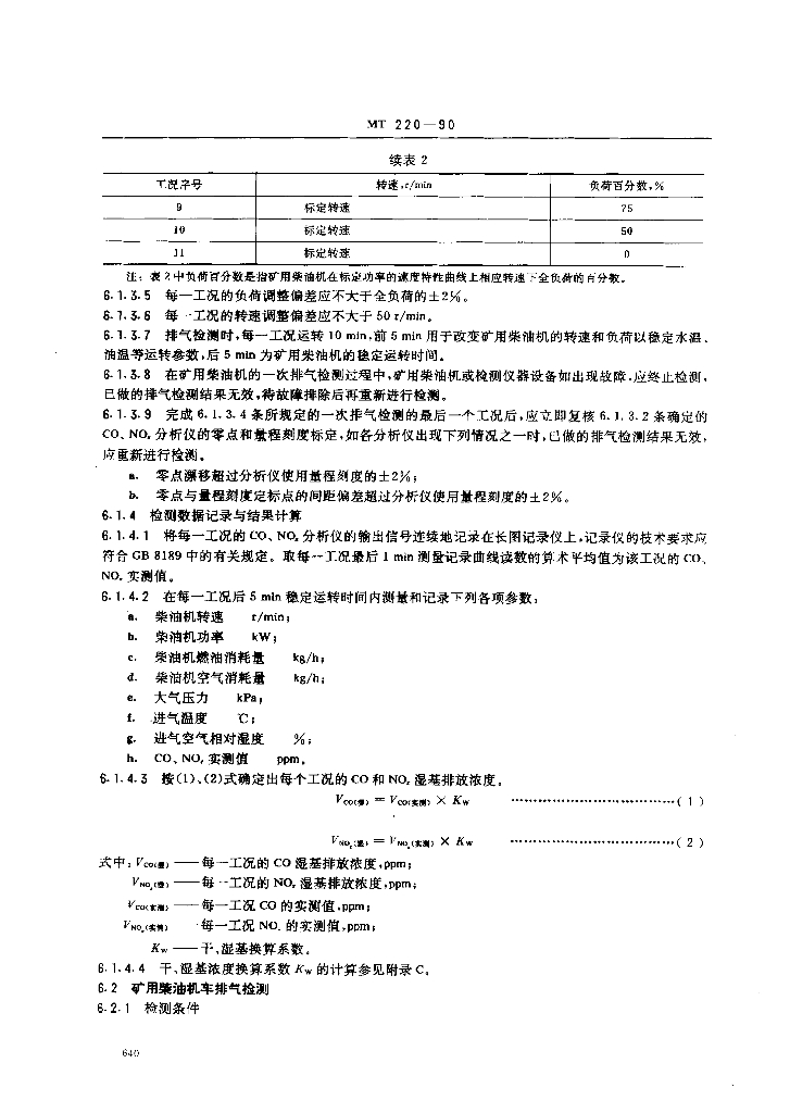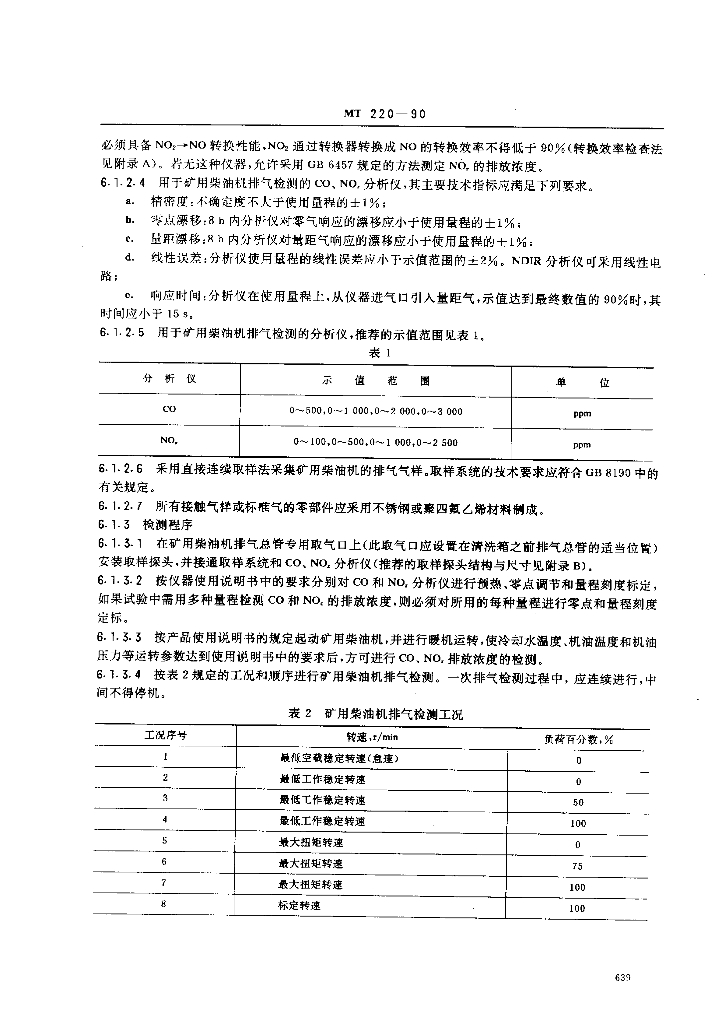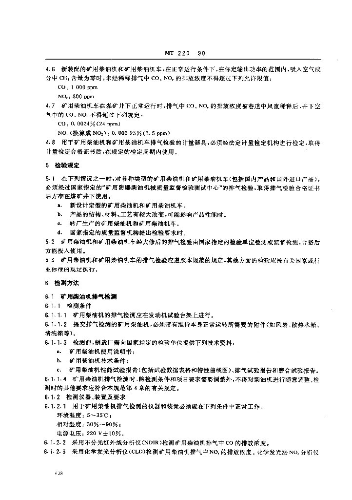 MT 220-1990 煤矿用防爆柴油机械排气中一氧化碳、氮氧化物检验规范