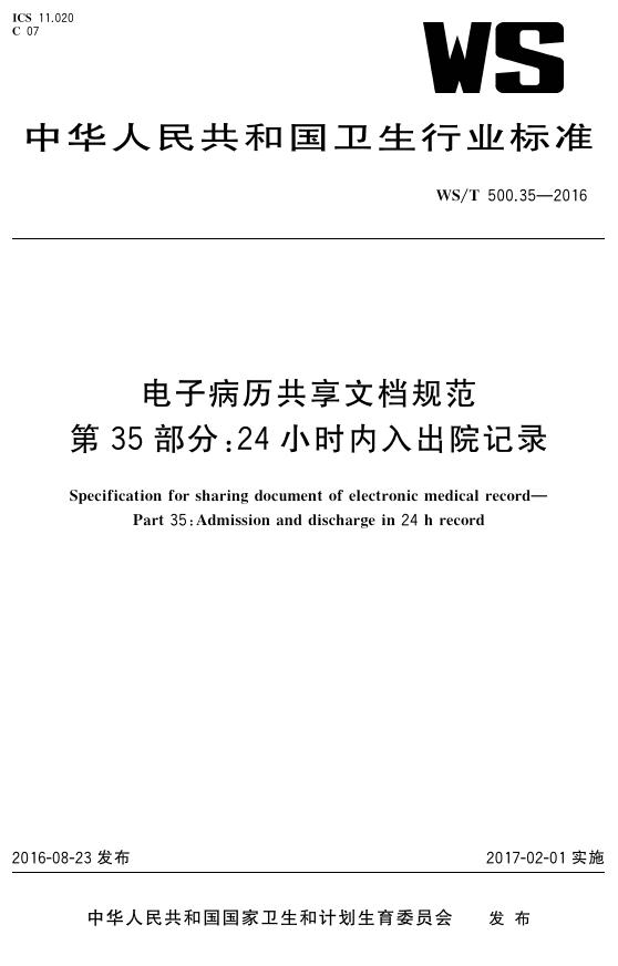 WS/T 500.35-2016 电子病历共享文档规范 第35部分:24小时内入出院记录