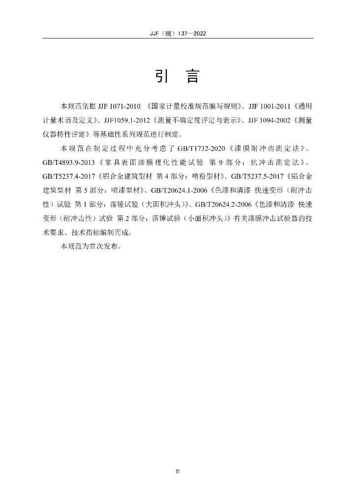 JJF(皖)137-2022 漆膜冲击试验器校准规范
