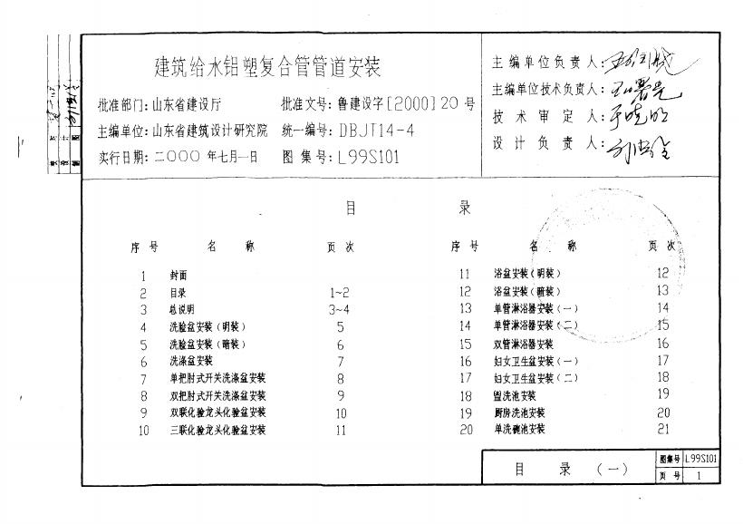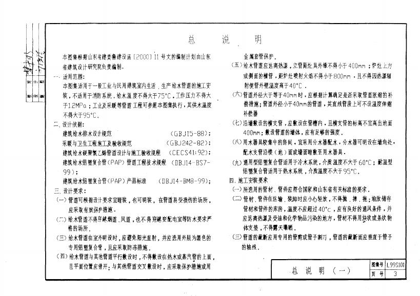L99S101 山东省建筑给水铝塑复合管管道安装图集