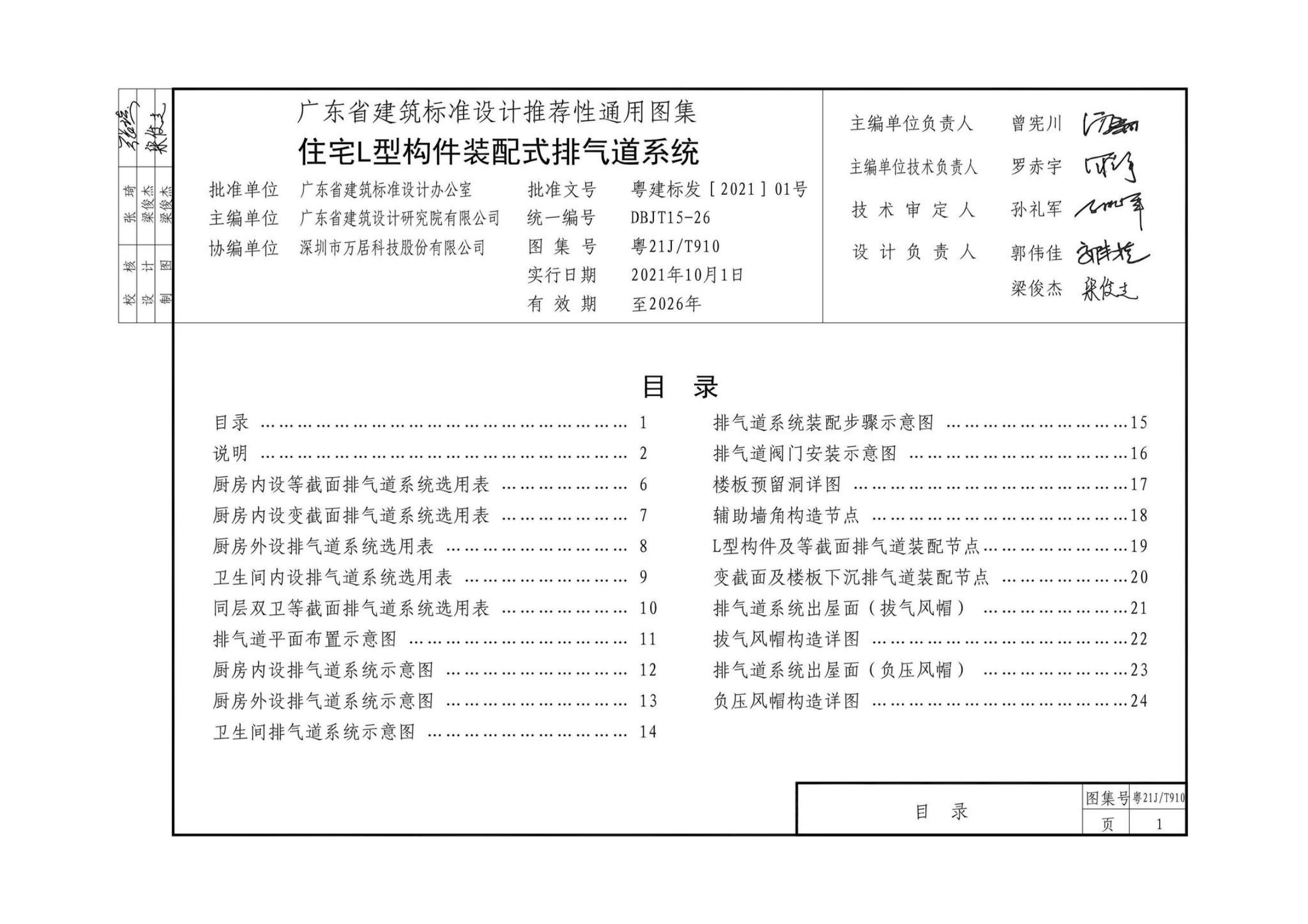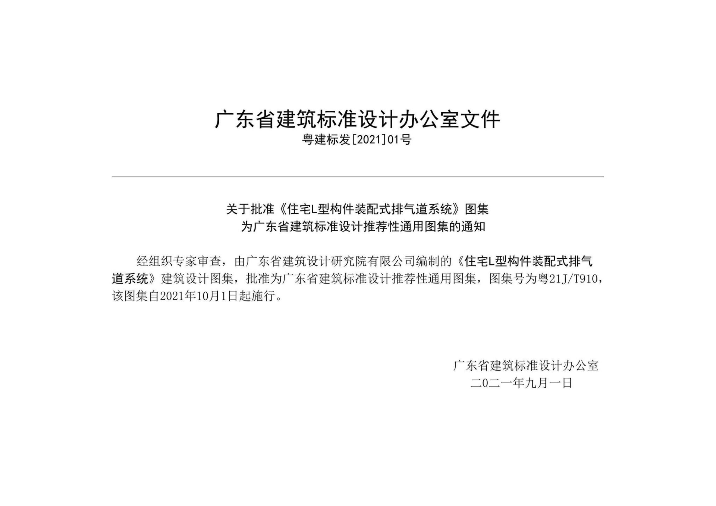 粤21J/T910 住宅L型构件装配式排气道系统图集
