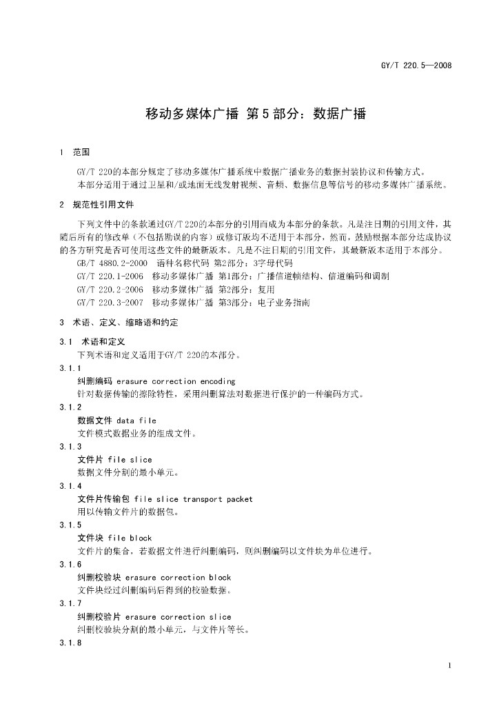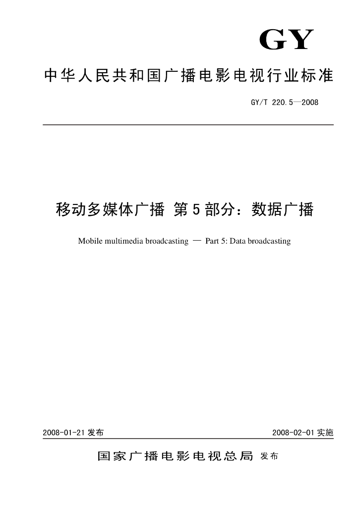 GY/T 220.5-2008 移动多媒体广播 第5部分:数据广播
