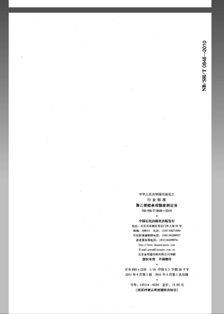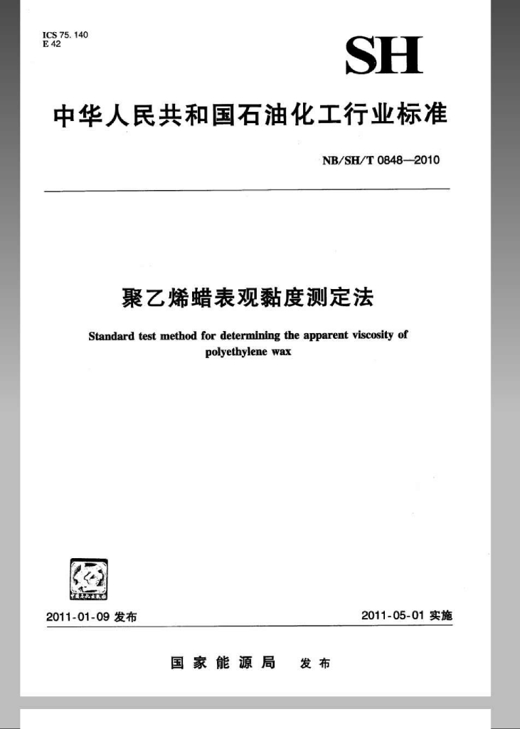 NB/SH/T 0848-2010 聚乙烯蜡表观黏度测定法