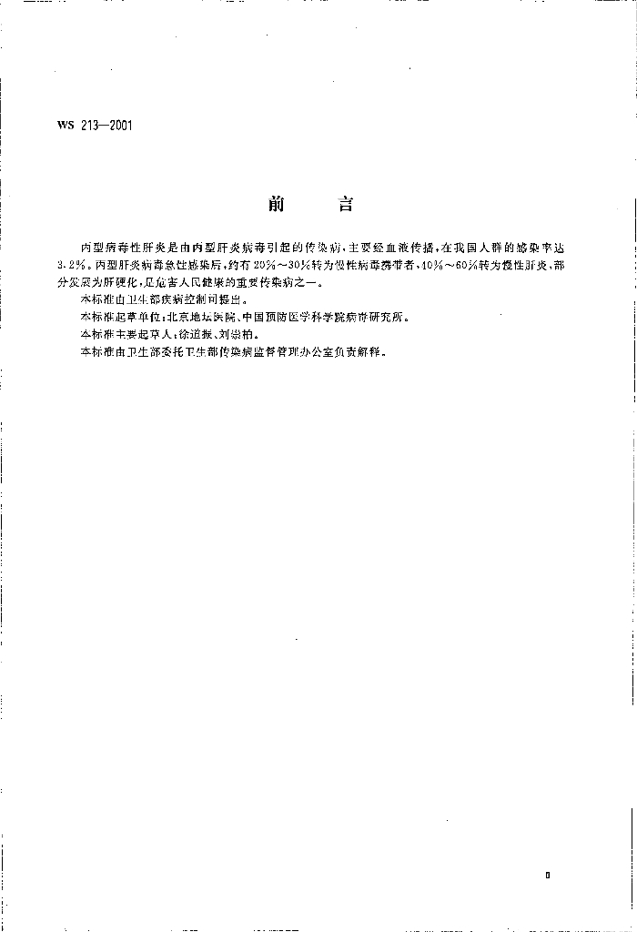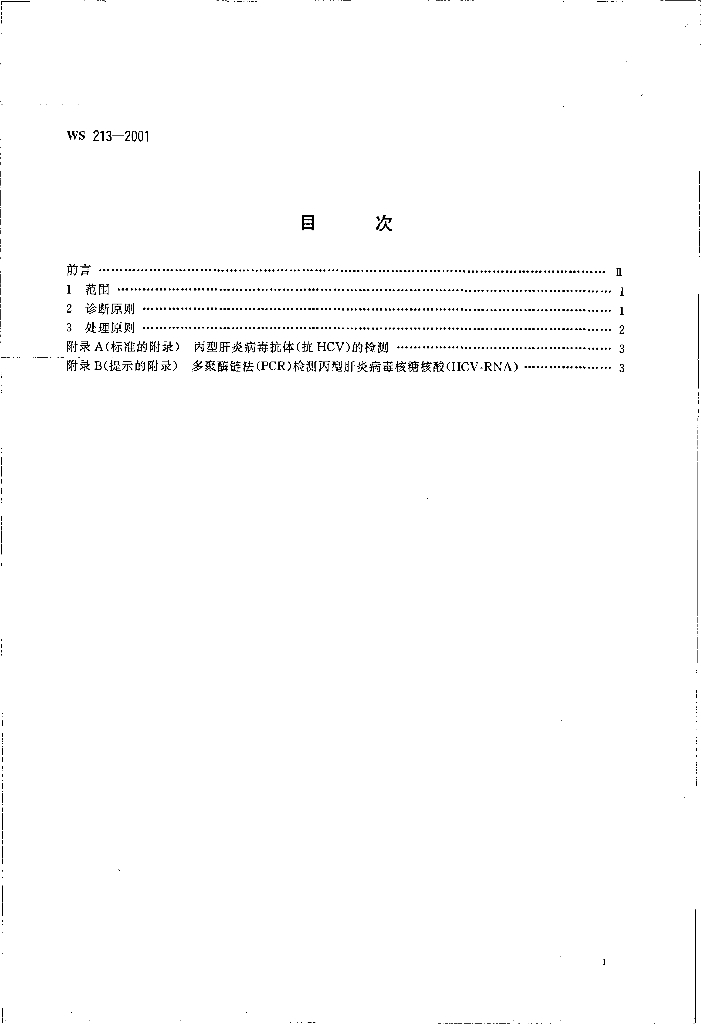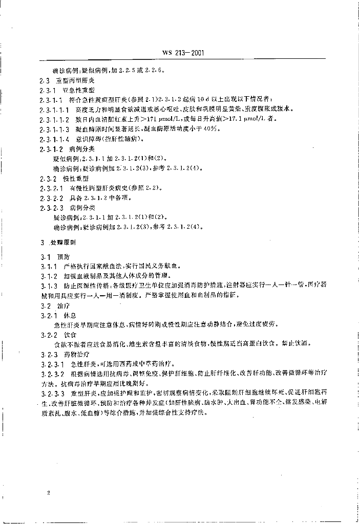 WS 213-2001 丙型病毒性肝炎诊断标准及处理原则
