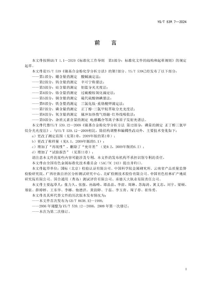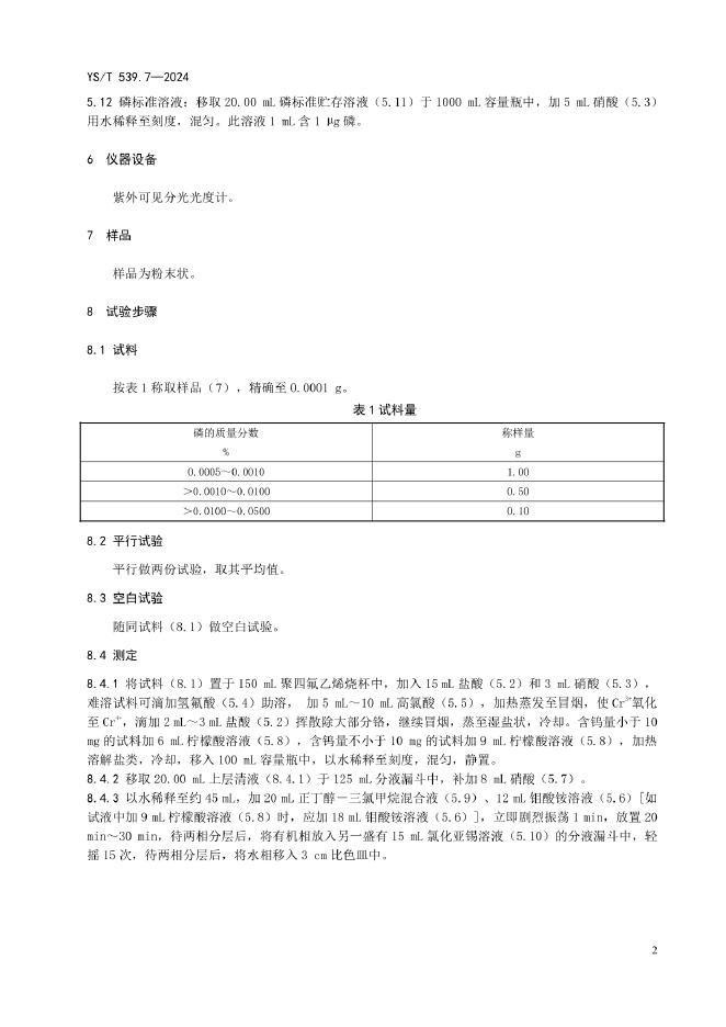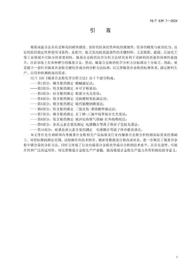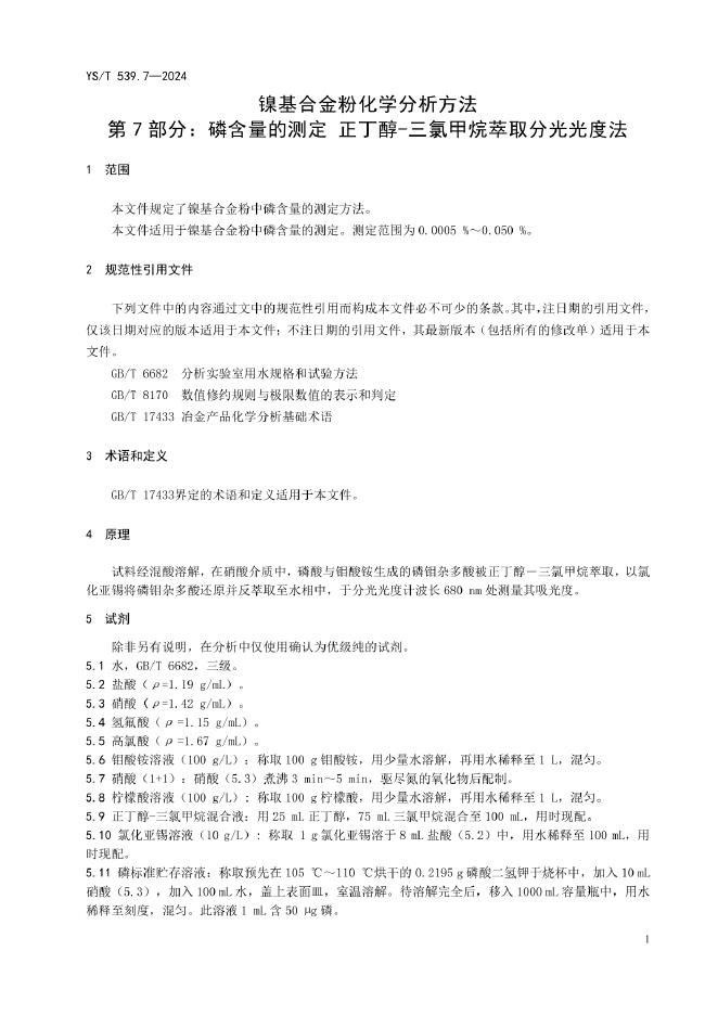 YS/T 539.7-2024 镍基合金粉化学分析方法 第7部分:磷含量的测定 正丁醇-三氯甲烷萃取分光光度法