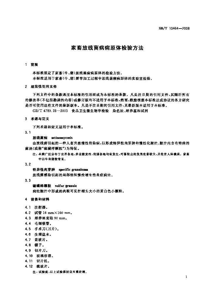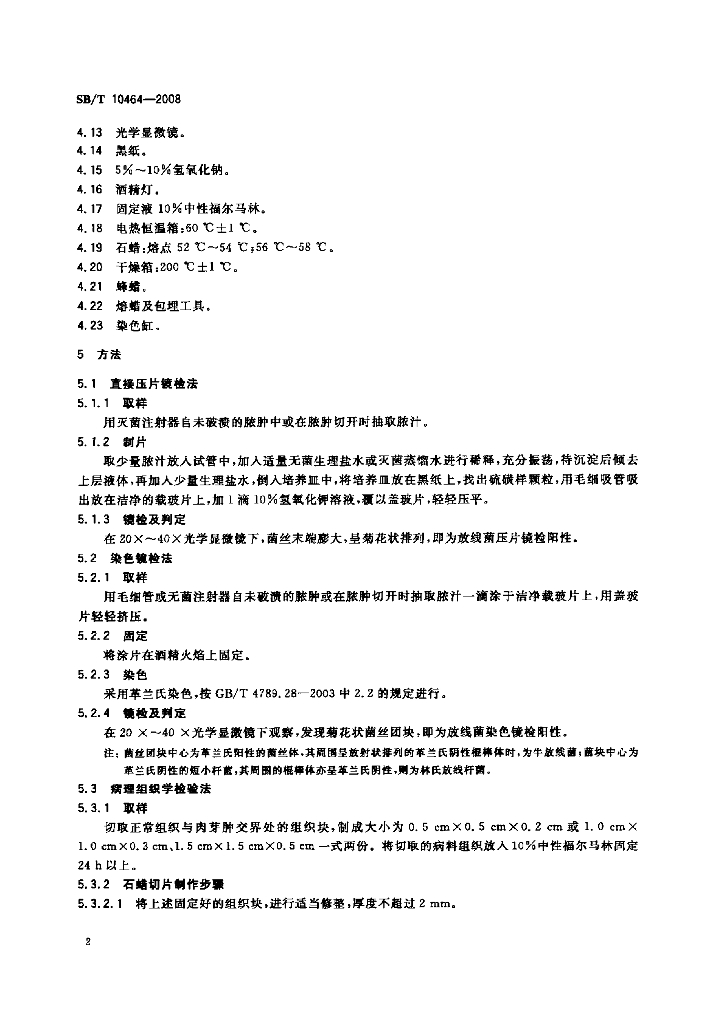 SB/T 10464-2008 家畜放线菌病病原体检验方法