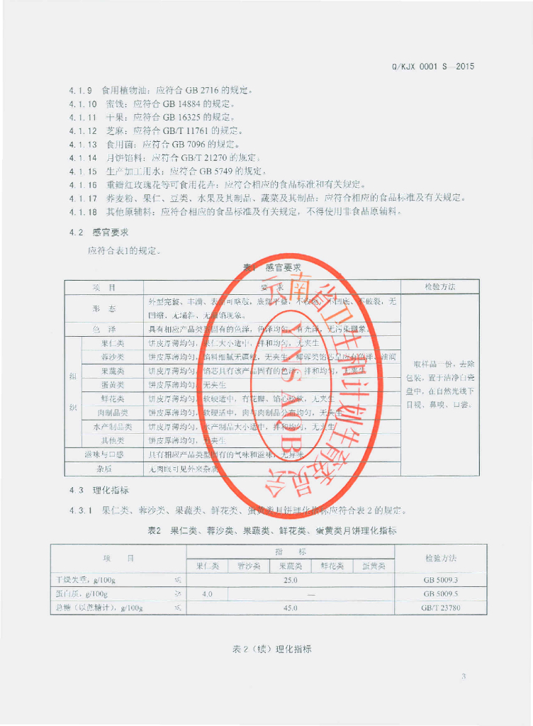Q/KJX 0001S-2015 昆明吉祥食品加工有限公司 滇式月饼