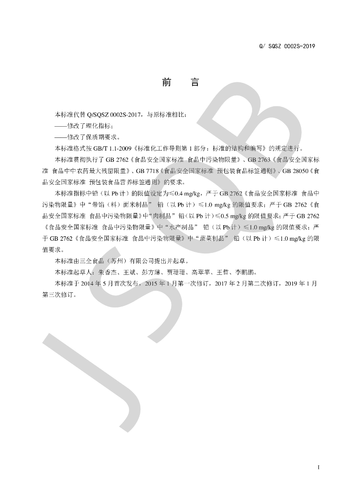 Q/SQSZ 0002S-2018 冷藏方便食品