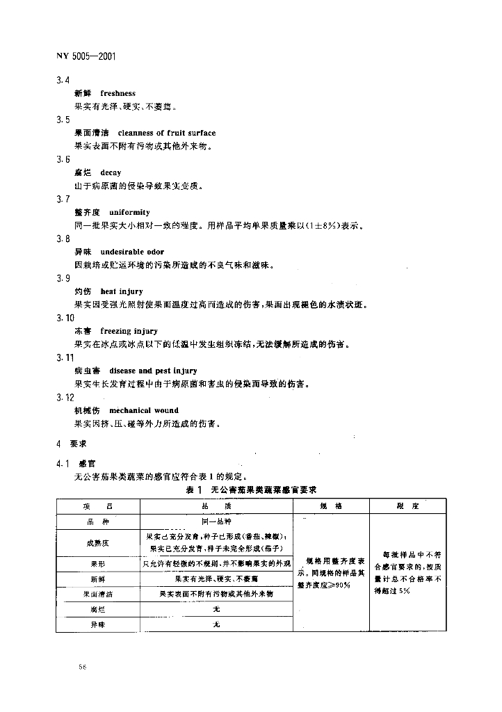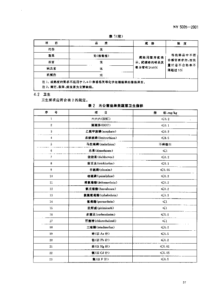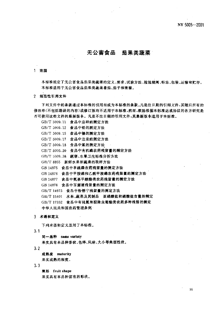 NY 5005-2001 无公害食品 茄果类蔬菜