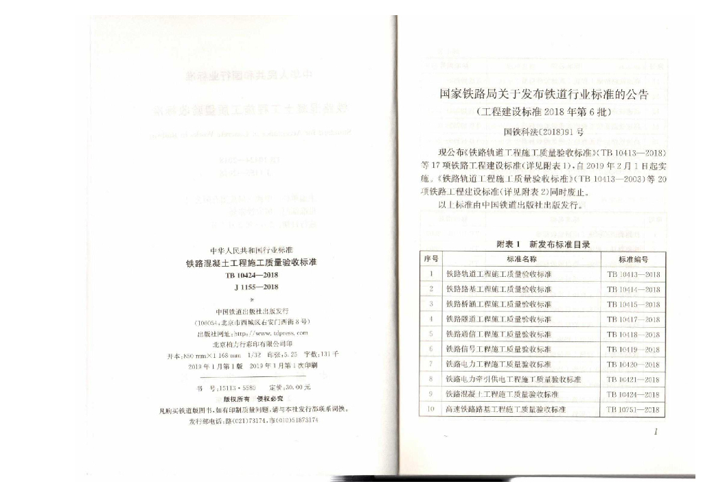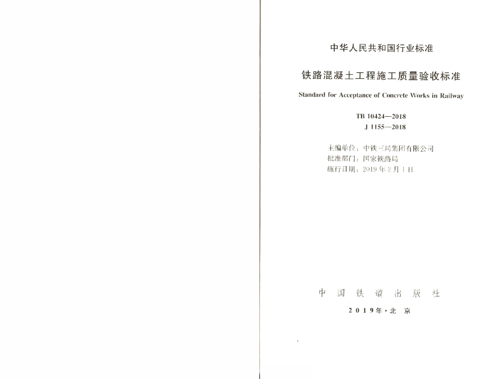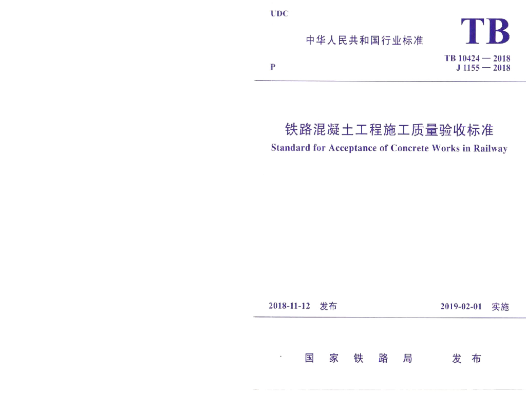 TB 10424-2010 铁路混凝土工程施工质量验收标准