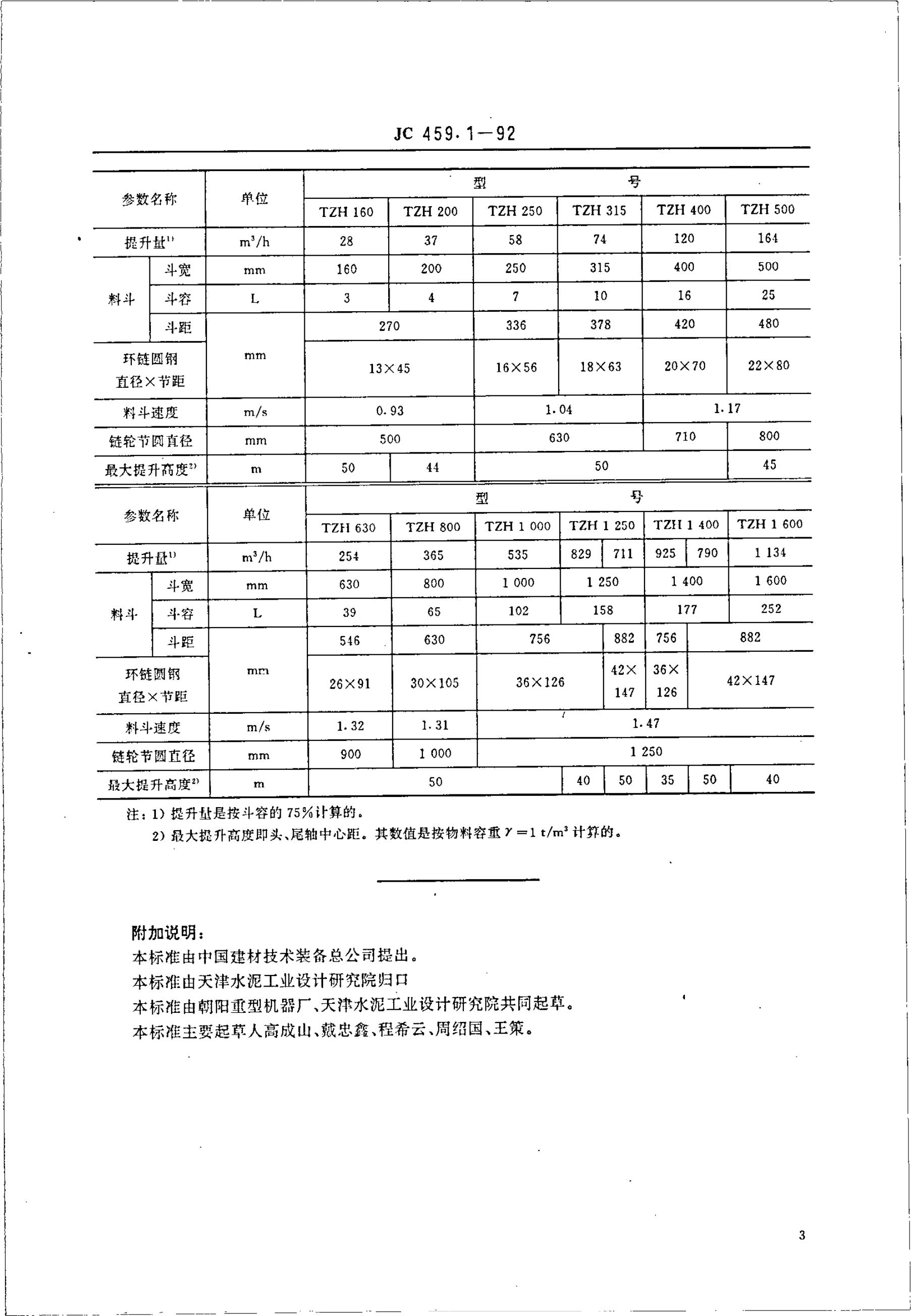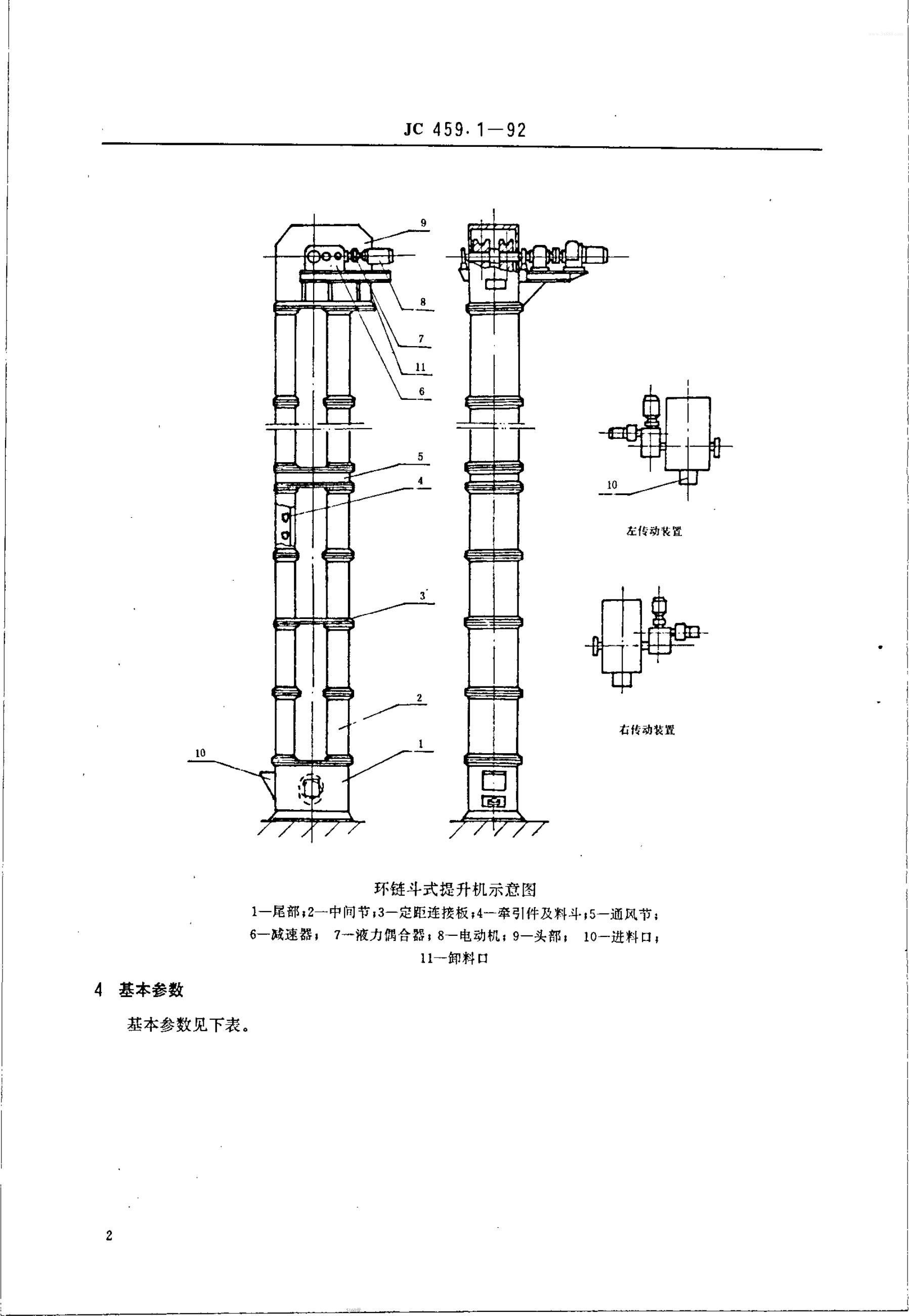 JC 459.1-1992 水泥工业用环链斗式提升机型式与基本参数