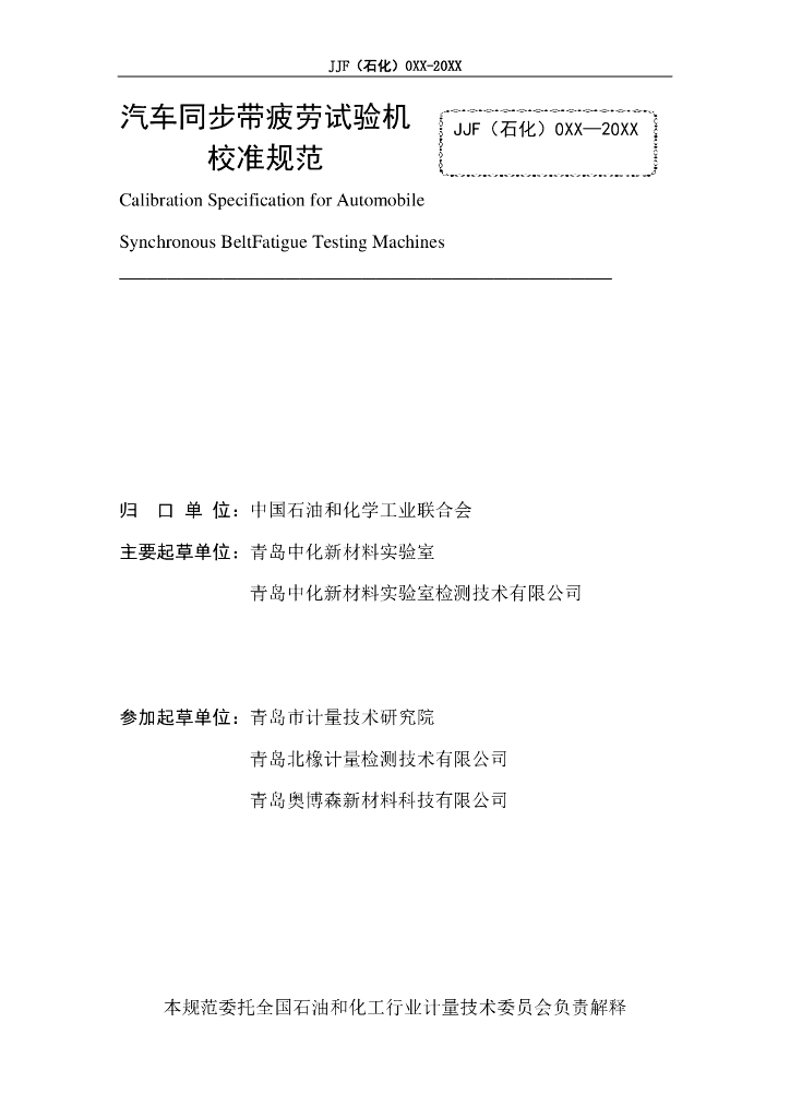 JJF(石化)092-2023 汽车同步带疲劳试验机校准规范(报批稿)