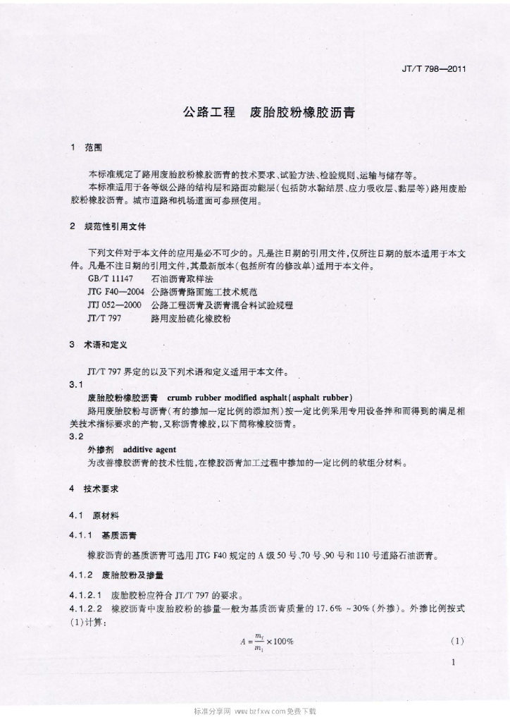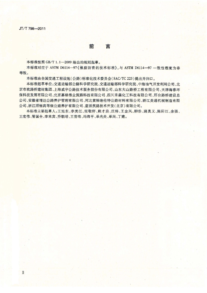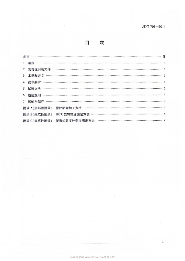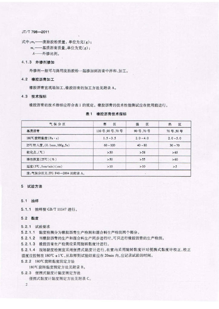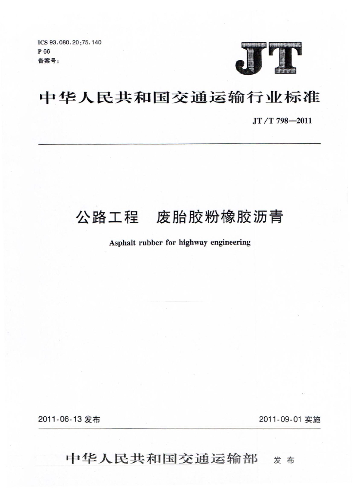 JT/T 798-2011 公路工程废胎胶粉橡胶沥青