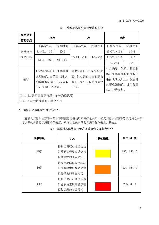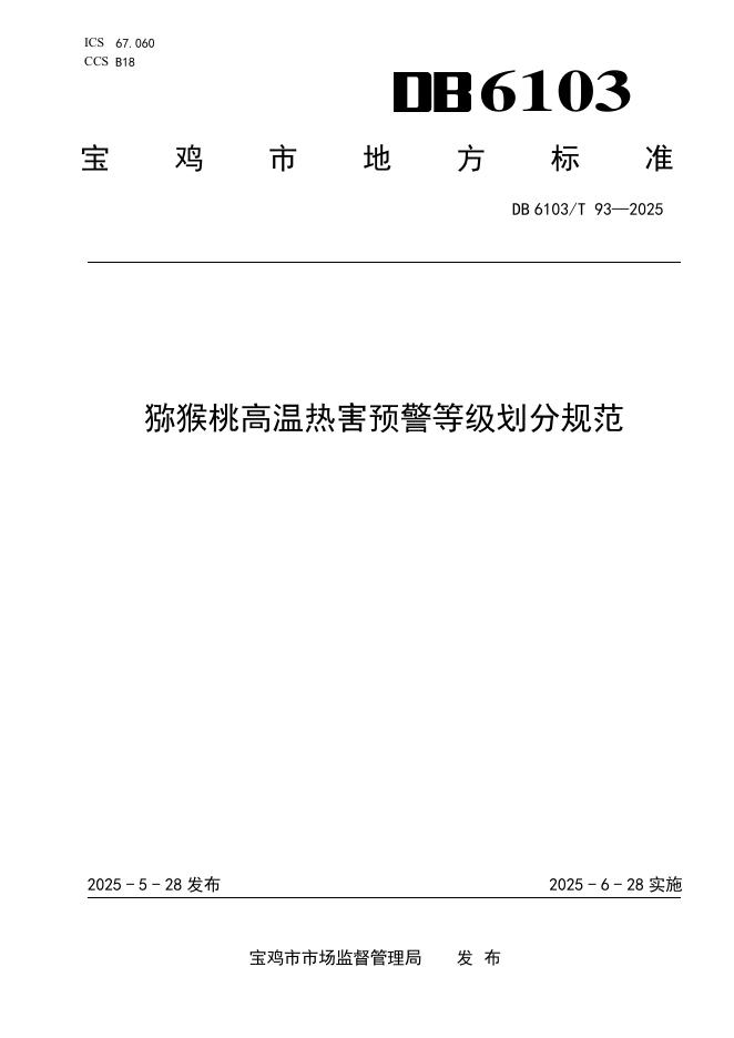 DB6103/T 93-2025 猕猴桃高温热害预警等级划分规范
