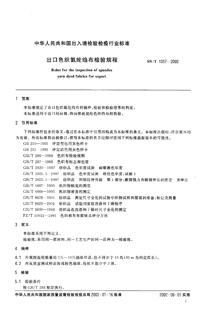 SN/T 1057-2002 出口色织氨纶绉布检验规程