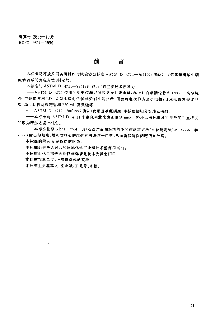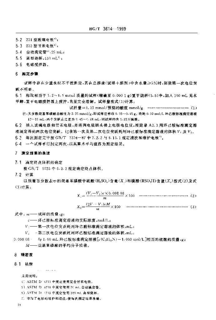 HG/T 3614-1999 烷基苯磺酸中磺酸和硫酸含量的测定