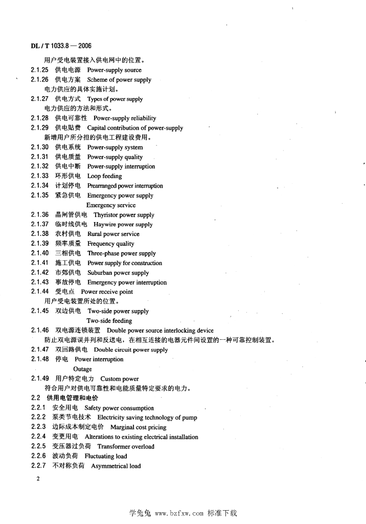 DL/T 1033.8-2006 电力行业词汇 第8部分:供电和用电
