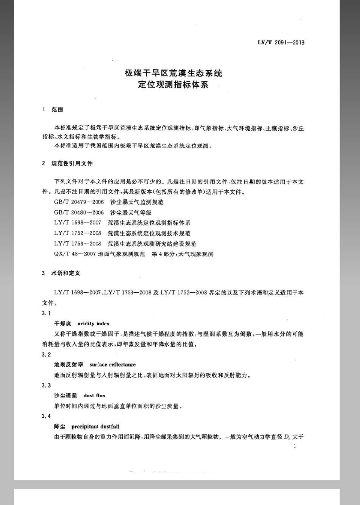 LY/T 2091-2013 极端干旱区荒漠生态系统定位观测指标体系