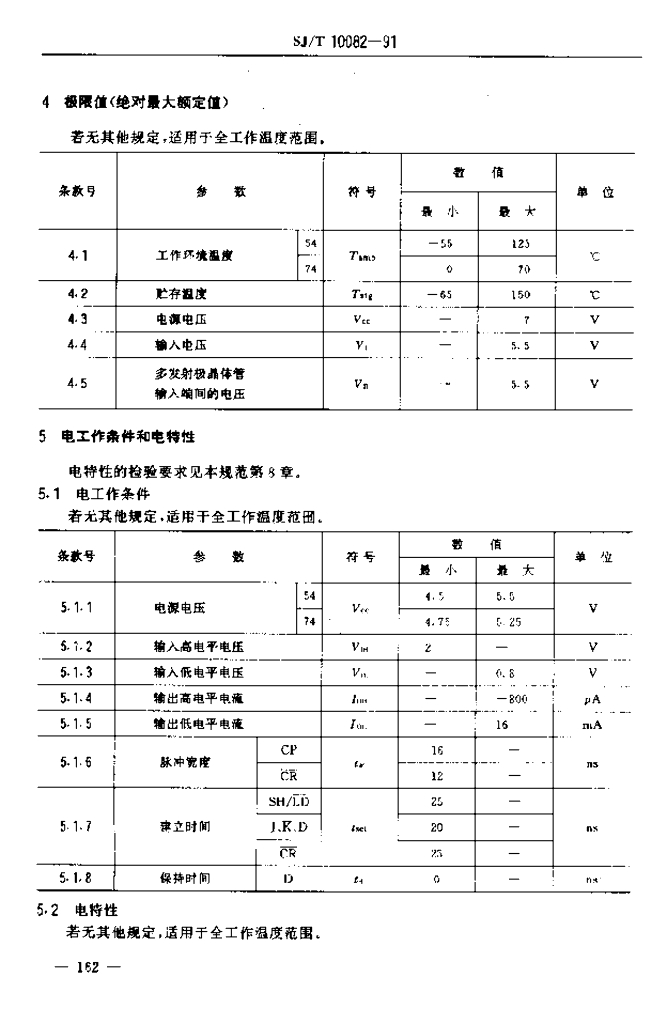 SJ/T 10082-1991 电子元器件详细规范 半导体集成电路CT54195/CT74195型4位移位寄存器 (并行存取,J-K输入)