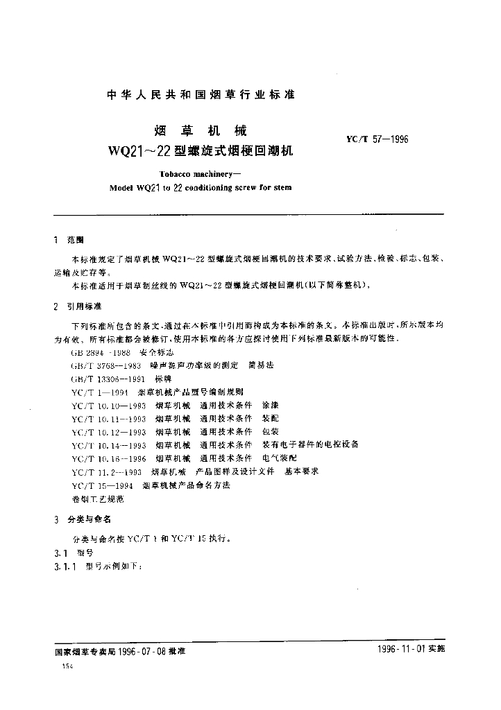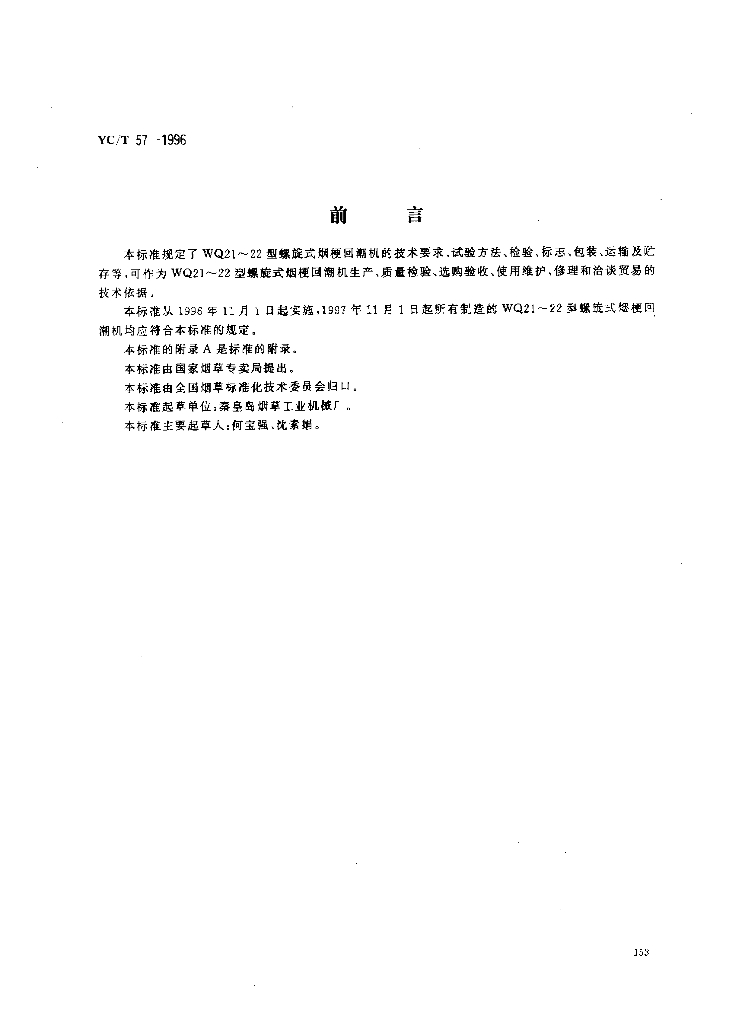 YC/T 57-1996 烟草机械WQ21~22型螺旋式烟梗回潮机