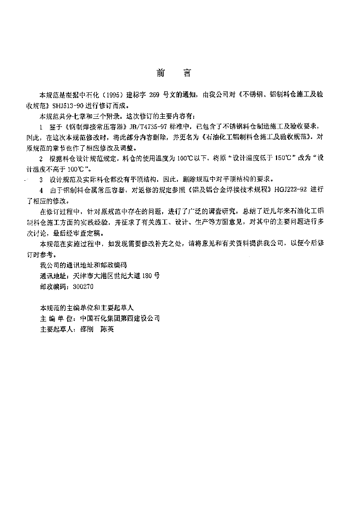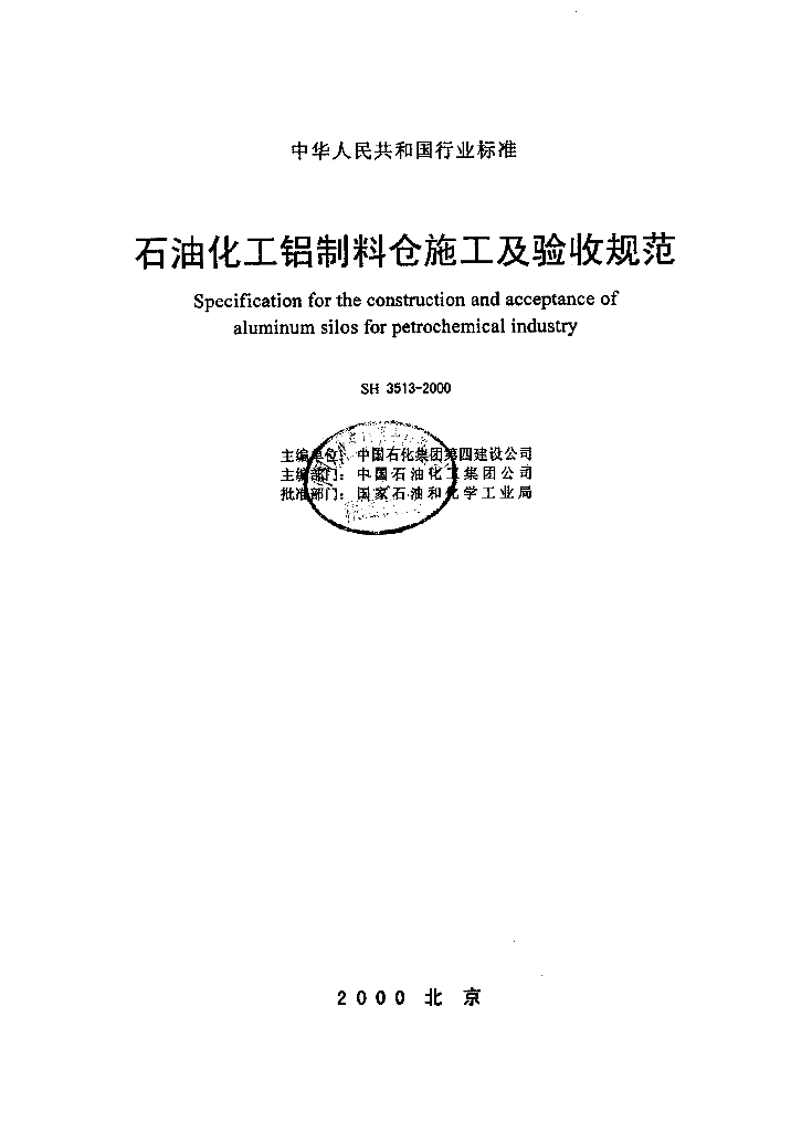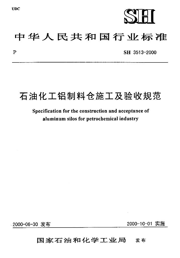 SH 3513-2000 石油化工铝制料仓施工及验收规范