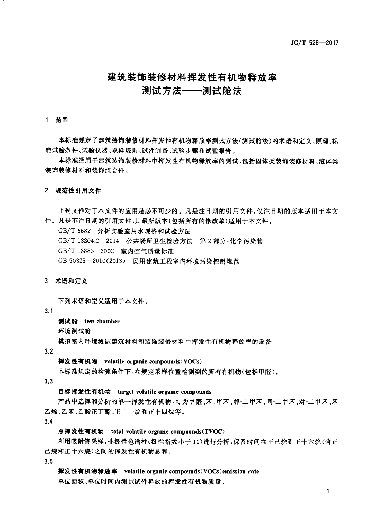 JG/T 528-2017 建筑装饰装修材料挥发性有机物释放率测试方法—测试舱法