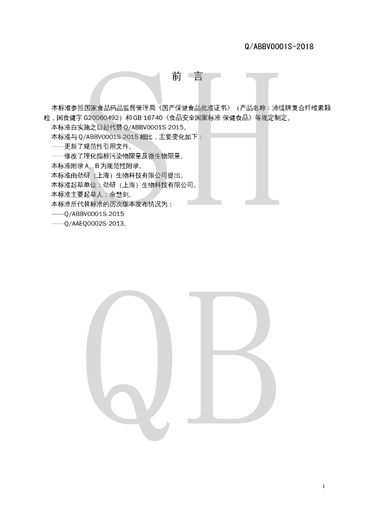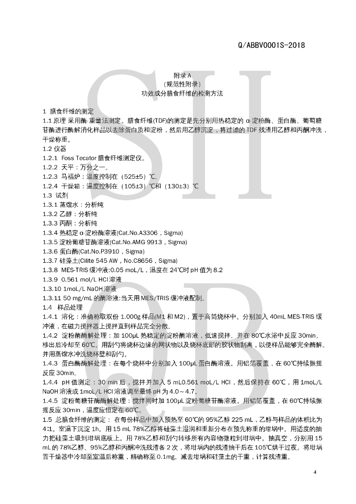 Q/ABBV 0001S-2018 沛缇牌复合纤维素颗粒
