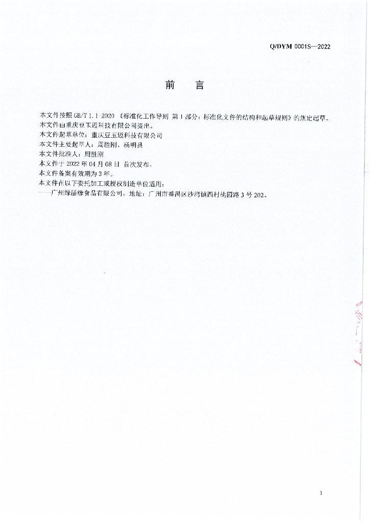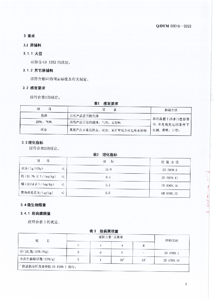 Q/DYM 0001S-2022 大豆制品