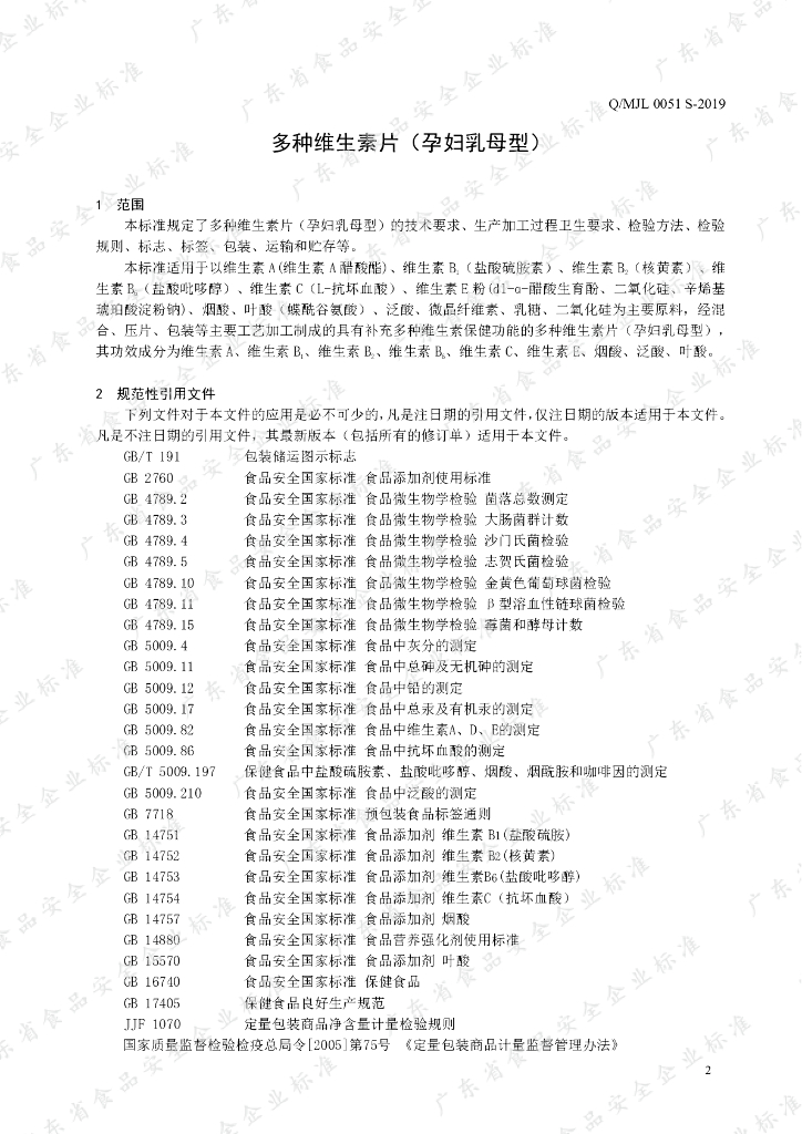 Q/MJL 0051S-2019 多种维生素片(孕妇乳母型)