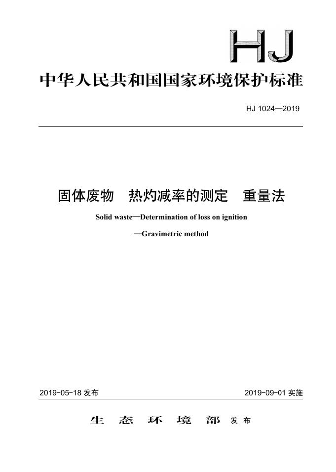 HJ 1024-2019 固体废物 热灼减率的测定 重量法