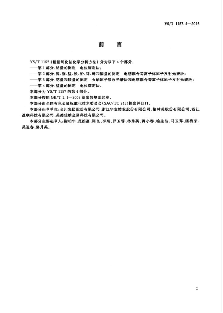 YS/T 1157.4-2016 粗氢氧化钴化学分析方法 第4部分:锰量的测定 电位滴定法