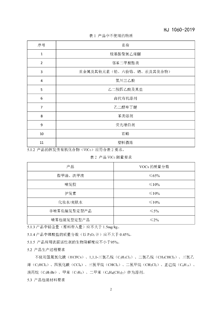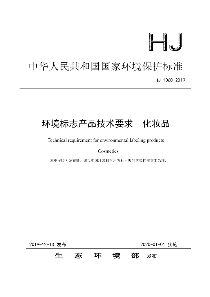 HJ 1060-2019 环境标志产品技术要求 化妆品
