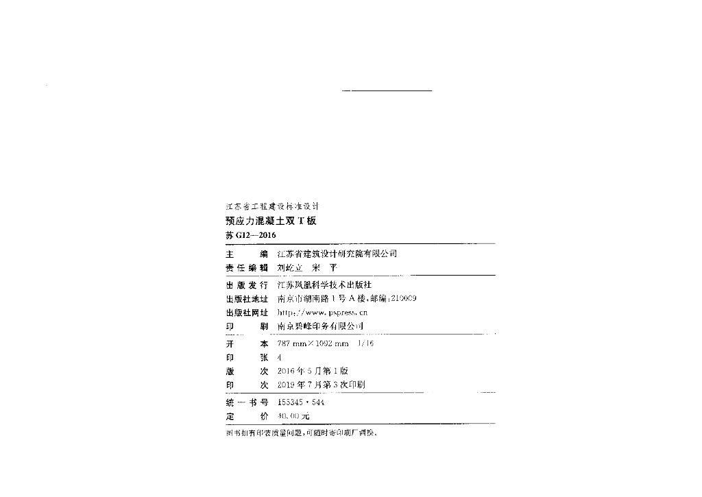 苏G12-2016 预应力混凝土双T板图集(江苏省)