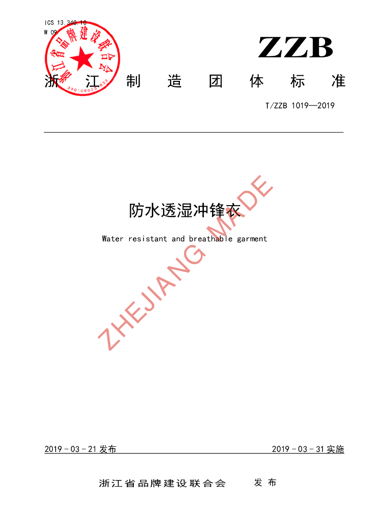 浙江迈豪登旅行装备股份有限公司、平湖市服装行业协会、浙江伴宇实业股份有限公司、浙江鑫特尔运动休闲用品有限公司、平湖市极地户外服饰有限公司、嘉兴雪飞制衣有限公司、三门县攀拓者户外用品有限公司