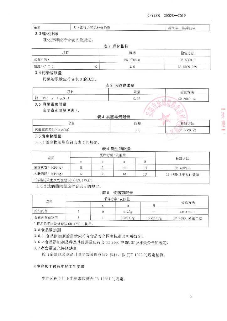 Q/YSZB 0002S-2019 方便粗粮湿面