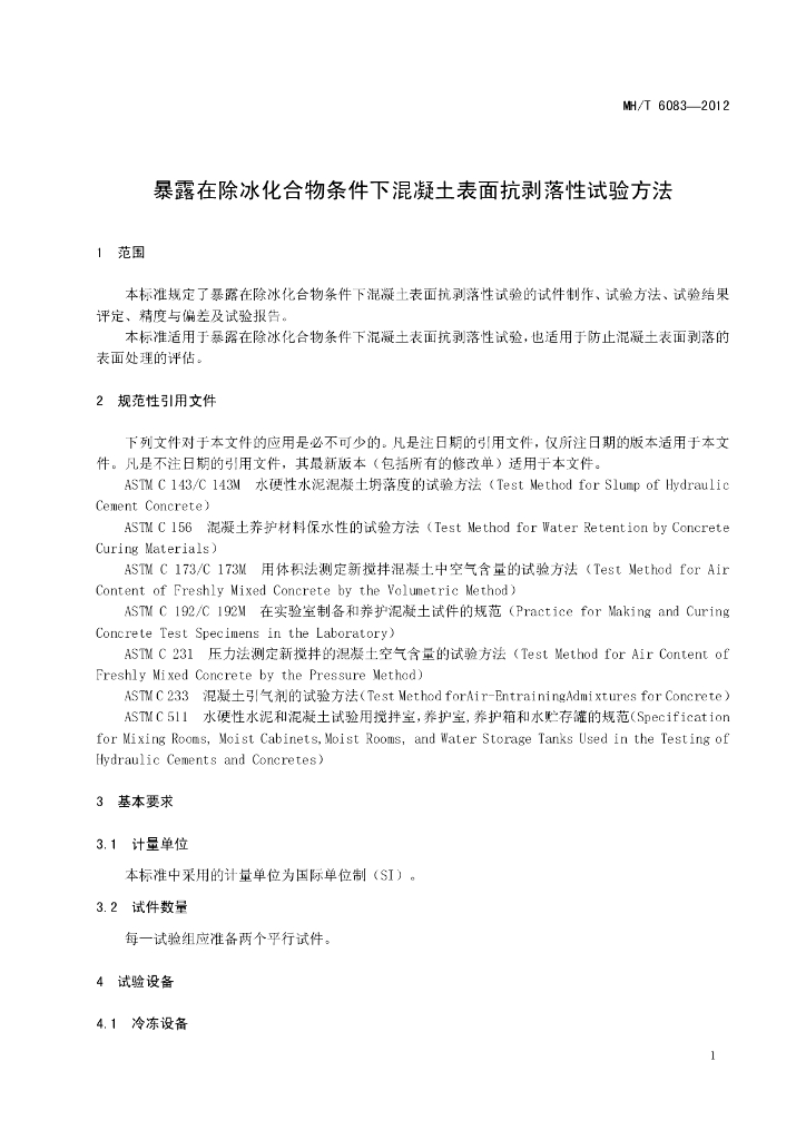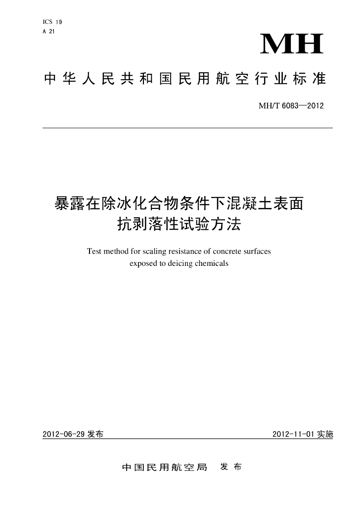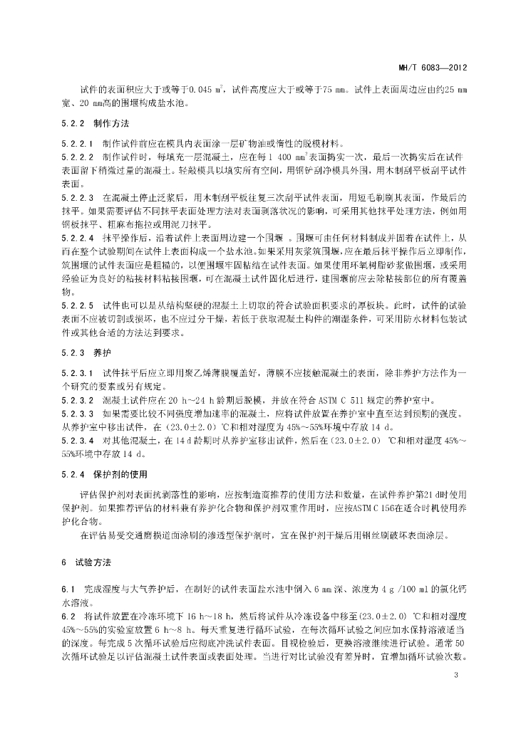 MH/T 6083-2012 暴露在除冰化合物条件下混凝土表面抗剥落性试验方法