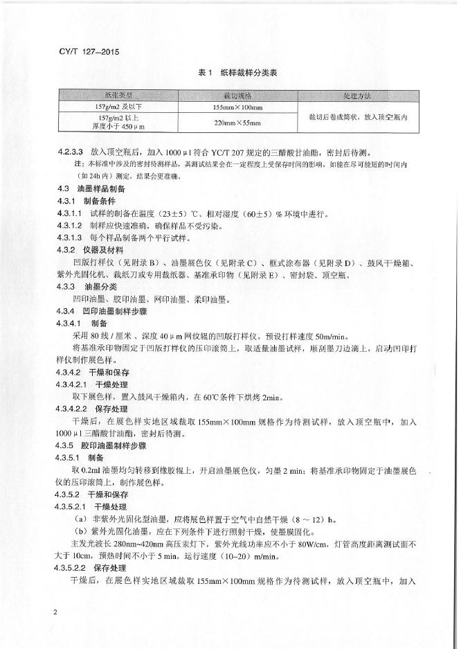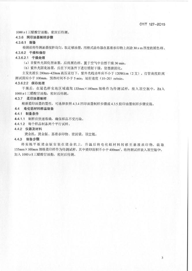 CY/T 127-2015 用于纸质印刷品的印刷材料挥发性有机化合物检测试样的制备方法