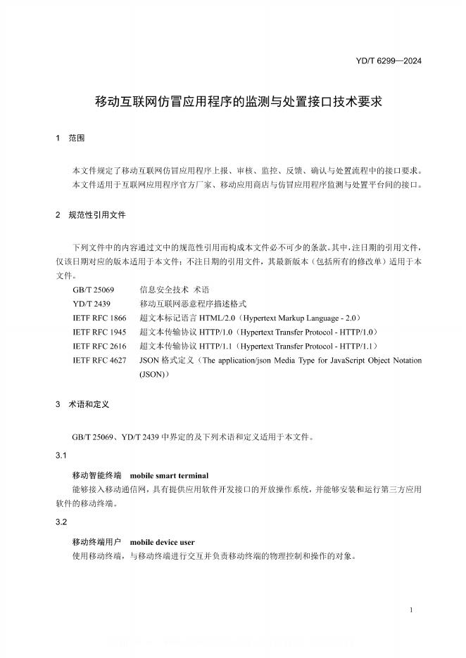 YD/T 6299-2024 移动互联网仿冒应用程序的监测与处置接口技术要求