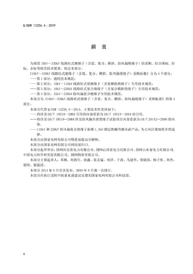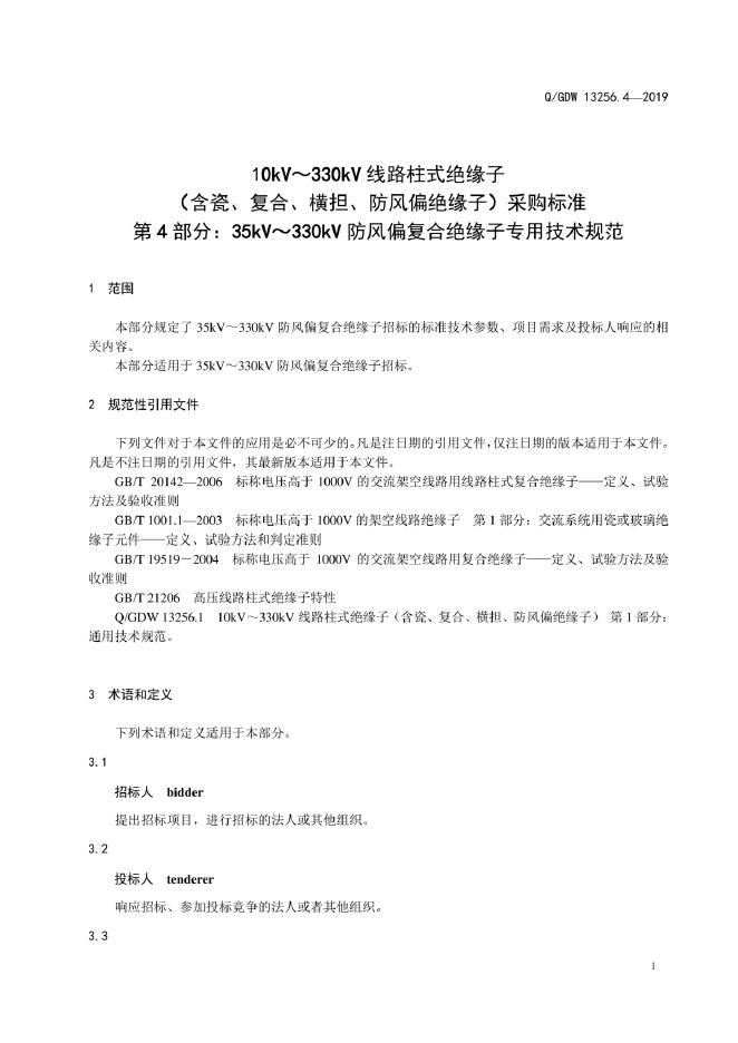Q/GDW 13256.4-2019 10kV~330kV线路柱式绝缘子(含瓷、复合、横担、防风偏绝缘子)采购标准 第4部分:35kV~330kV防风偏复合绝缘子专用技术规范